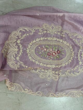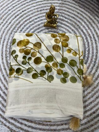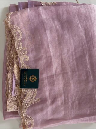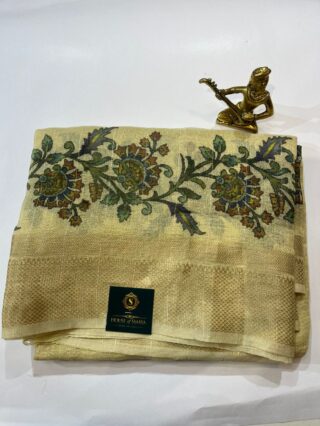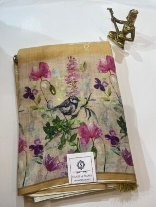 Pastel Yellow & Beige Linen Saree with Floral Embroidery – House of Smaya