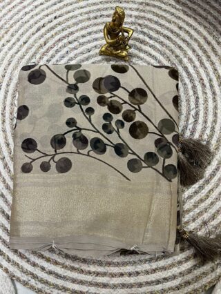 Off-White Linen Saree with Vibrant Orange & Pink Floral Print – House of Smaya