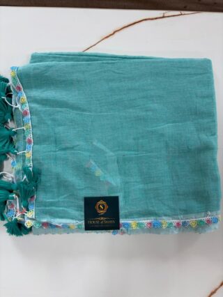 Multicolor Striped Linen Saree with Subtle Red and Yellow Accents – House of Smaya