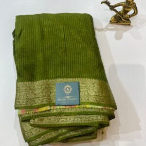 Olive Green Textured Chiffon Saree with Subtle Gold Border