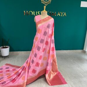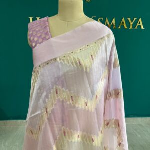 Pastel Pink Silk Organza Saree with Golden Zigzag Weave