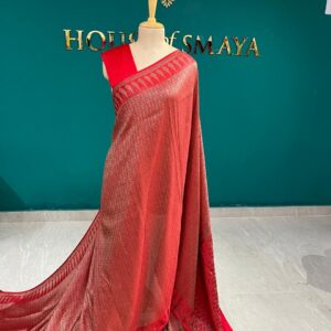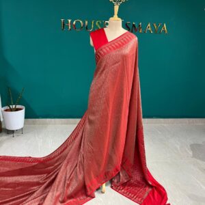 Classic Red Banarasi Silk Saree with Zari Detailing & Contrast Border