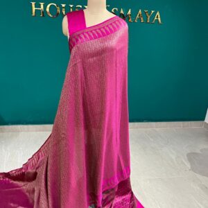 Magenta Pink Banarasi Silk Saree with Zari Detailing & Elegant Border
