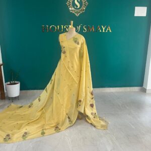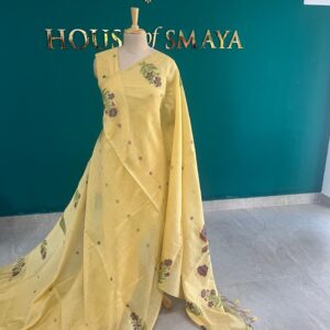 Soft Yellow Chanderi Cotton Saree with Subtle Floral Motifs – House of Smaya