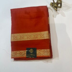 Rust Red Semi Crepe Saree with Elegant Gold Woven Border