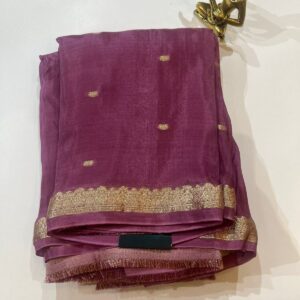 Plum Purple Semi Crepe Saree with Gold Zari Border & Butta Motifs