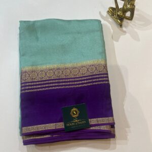 Sea Green & Royal Purple Semi Crepe Saree with Gold Zari Border