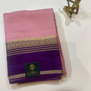 Blush Pink & Royal Purple Semi Crepe Saree with Gold Zari Border