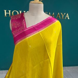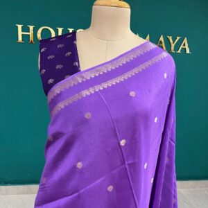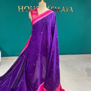 Purple Silk Saree with Pink Contrast Border – House of Smaya