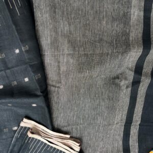 Black Linen Saree with Beige Threadwork and Minimal Zari Border