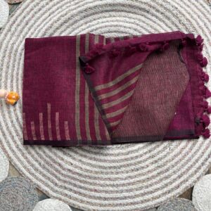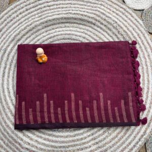 Wine Linen Saree with Golden Threadwork and Tassel Detailing