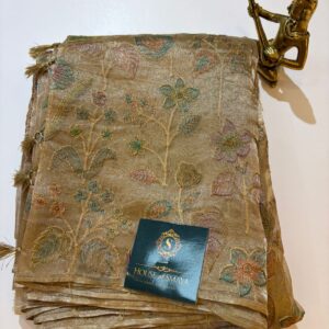 Pure Tissue Saree with Hand-Embroidered Pastel Floral Motifs
