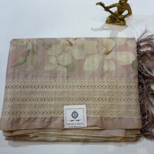 Pastel Floral Printed Tussar Saree with Intricate Embroidered Border