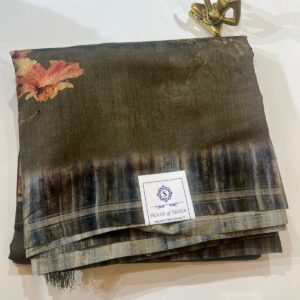 Olive Grey Semi Tussar Saree with Subtle Floral Print and Shaded Pallu