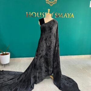 Elegant Black Crushed Velvet Saree – House of Smaya