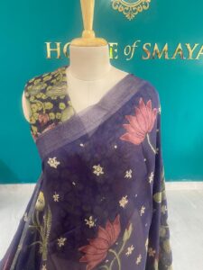 Bring home effortless elegance with this beautifully crafted Cotton Linen Saree, designed for lovers of soft aesthetics and nature-inspired prints. The saree features a soothing beige base adorned with delicate floral motifs and an artistic bird print, creating a graceful, hand-painted look.