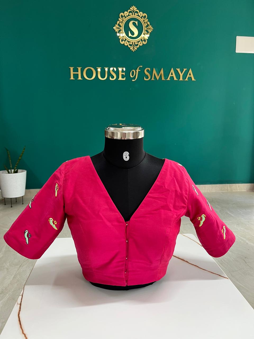 Fuchsia Cotton Blouse with Hand-Embroidered Birds – House of Smaya
