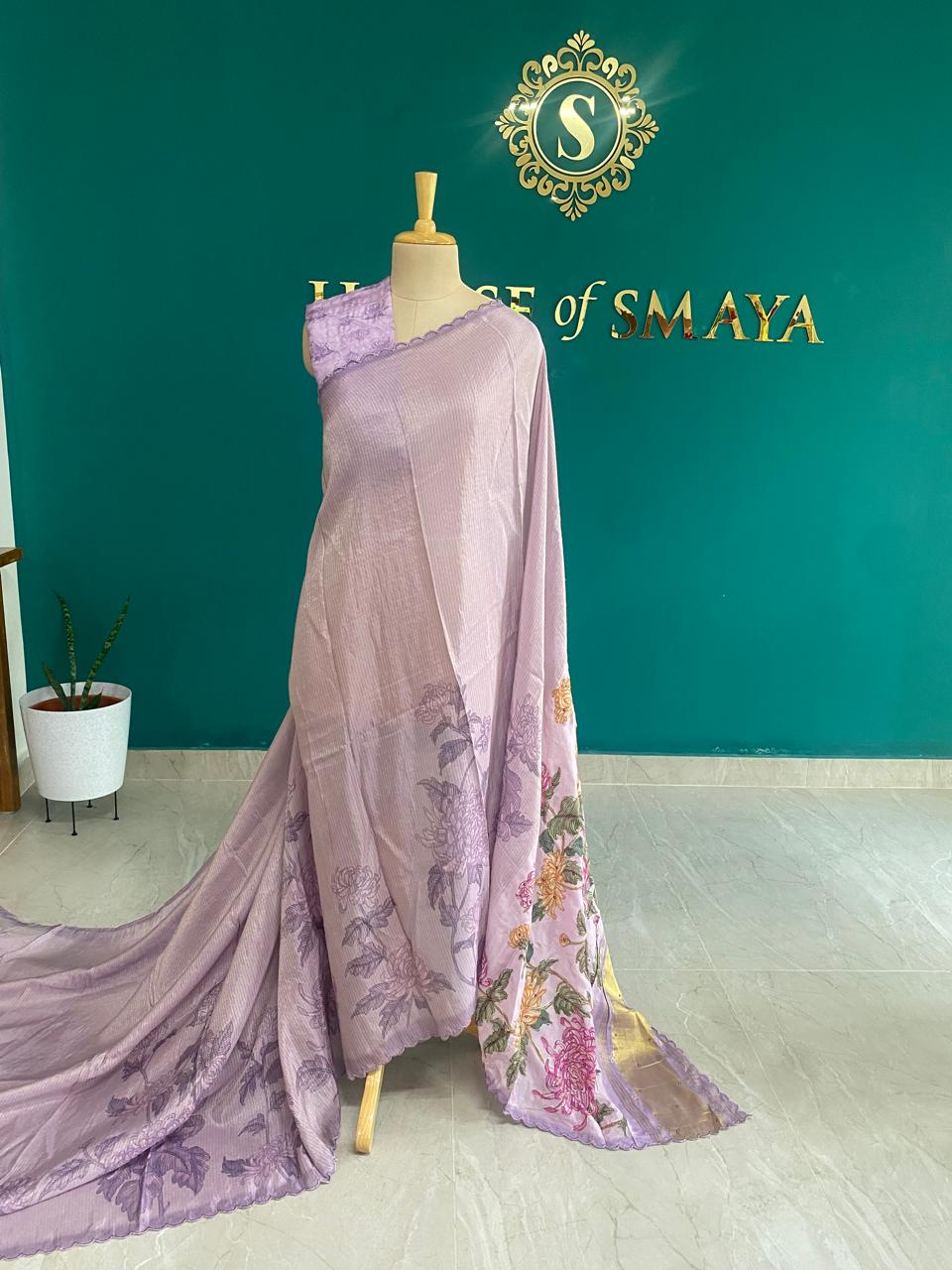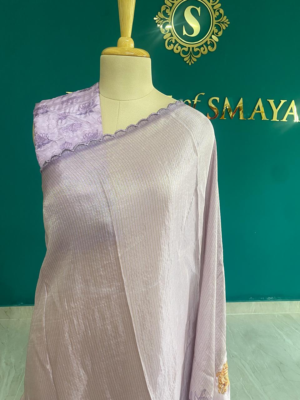 Embrace effortless grace in our Lilac Mist Embroidered Organza Saree, a dreamy creation by House of Smaya.