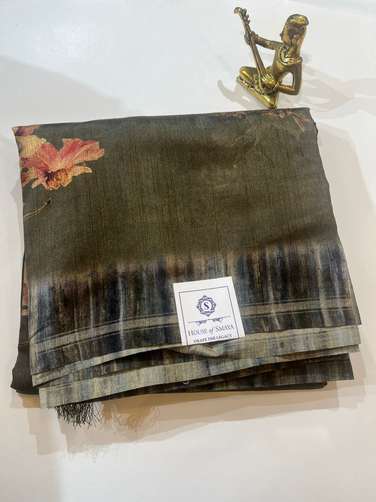 Elevate your everyday elegance with this graceful Semi Tussar Saree, crafted for women who appreciate understated luxury. The saree features a rich olive-grey base with a soft, shaded texture, beautifully enhanced by delicate floral accents that add an artistic touch without overpowering the look.