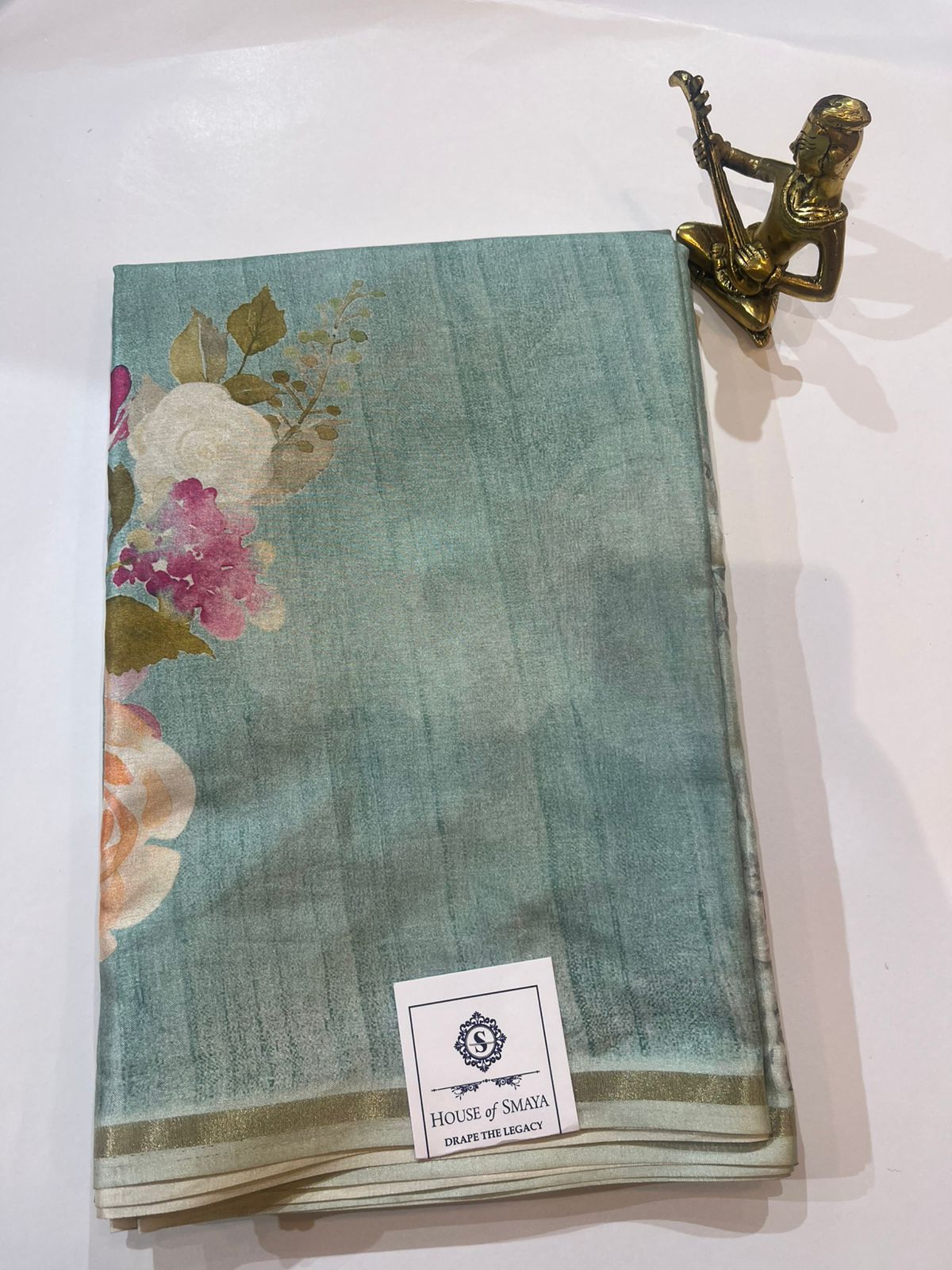 Pastel Aqua Semi Silk Saree with Soft Floral Accents