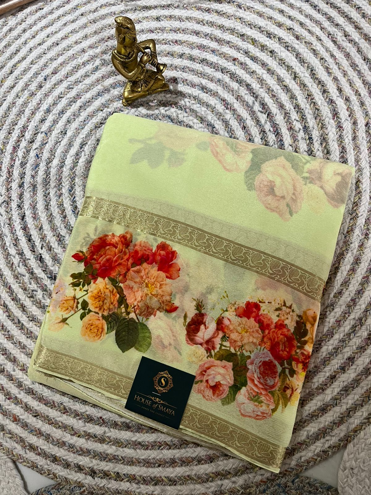 • Border: Elegant gold woven border