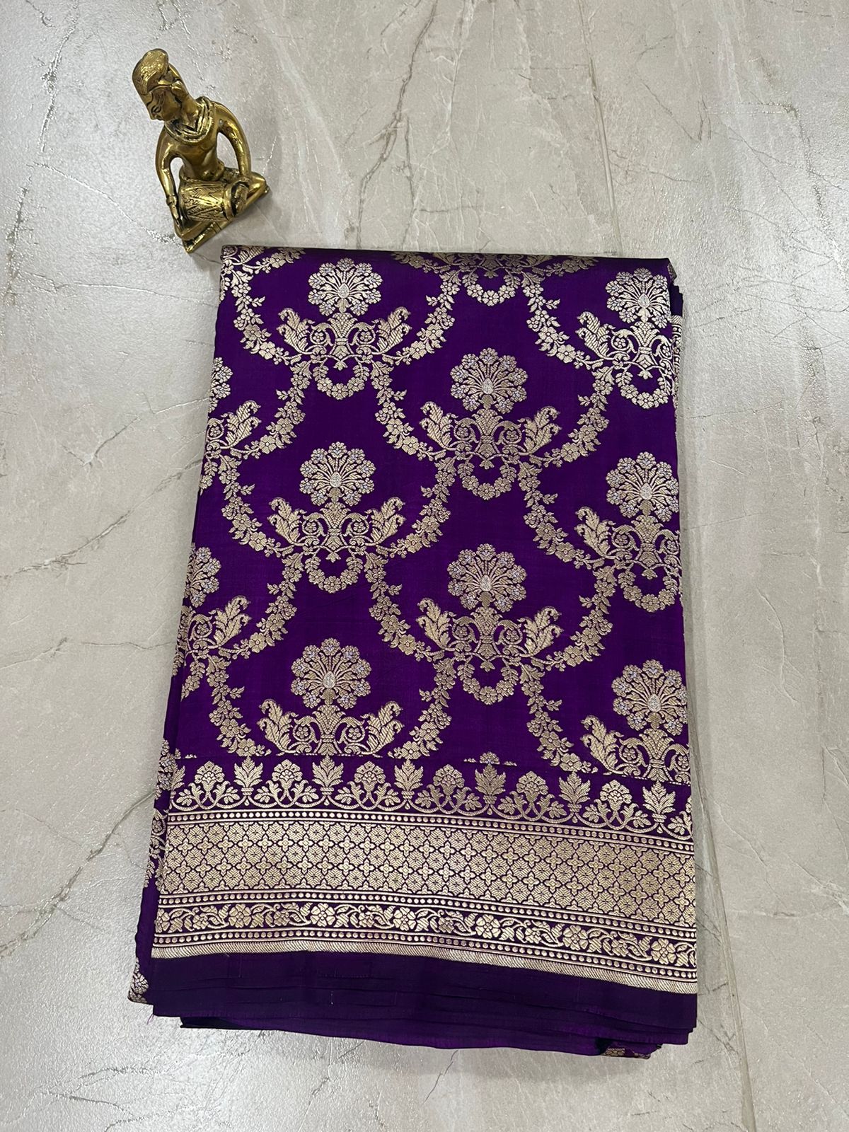 Purple Banarasi Silk Saree with Golden Zari Floral Weave