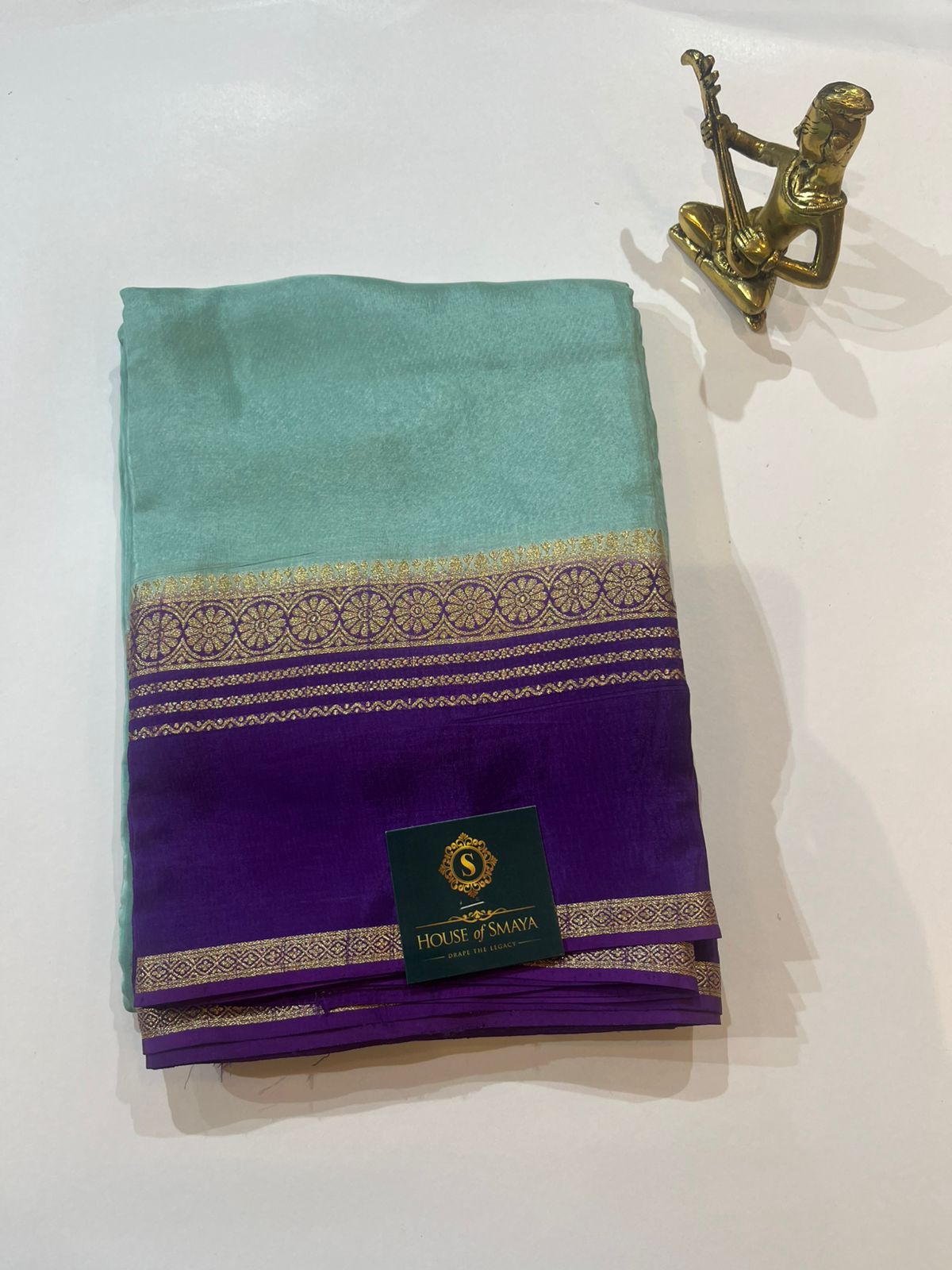Sea Green & Royal Purple Semi Crepe Saree with Gold Zari Border
