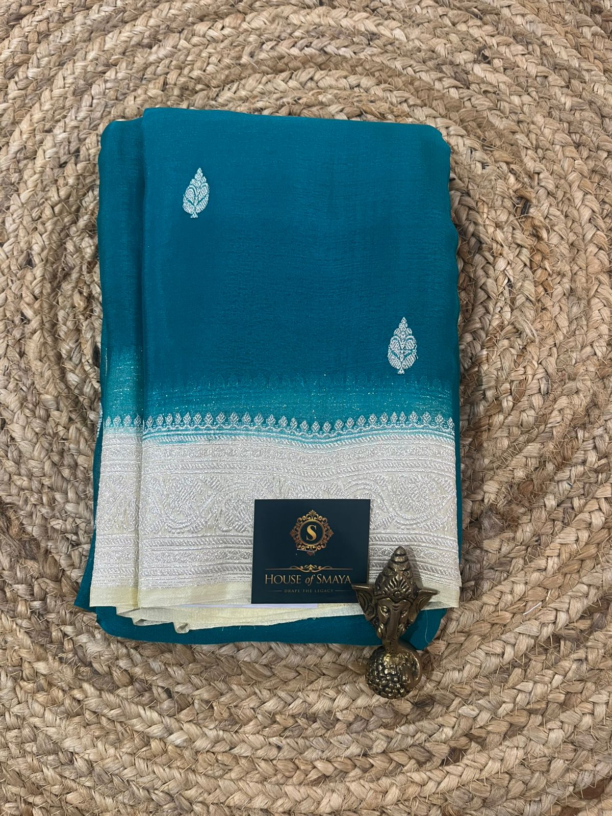 Teal Blue Pure Khaddi Chiffon Saree with Silver Woven Border